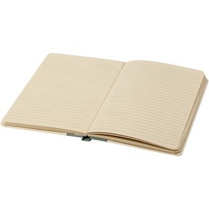 Liliana Hardcover Notizbuch im A5-Format mit abgerundeten Ecken und 80 Blatt liniertem 90 g/m² Papier. Der Einband besteht aus RPET und Zuckerrohrpapier.
