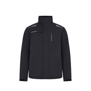 Gepolsterte Jacke (180 g/m²), aus recyceltem Polyester (50 %) und Polyester (50 %). Mit wasserabweisendem Stretchmaterial, heißversiegelten Nähten, reflektierenden Details und einem zentralen Reißverschluss. Die Jacke hat verdeckte Knöpfe und fünf Taschen (zwei Seitentaschen, eine Brusttasche links, eine Brusttasche rechts und eine Innentasche). Größen: S, M, L, XL, 2 XL, 3 XL